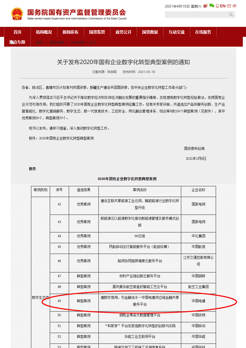 国资委2020年国有企业数字化转型典型案例