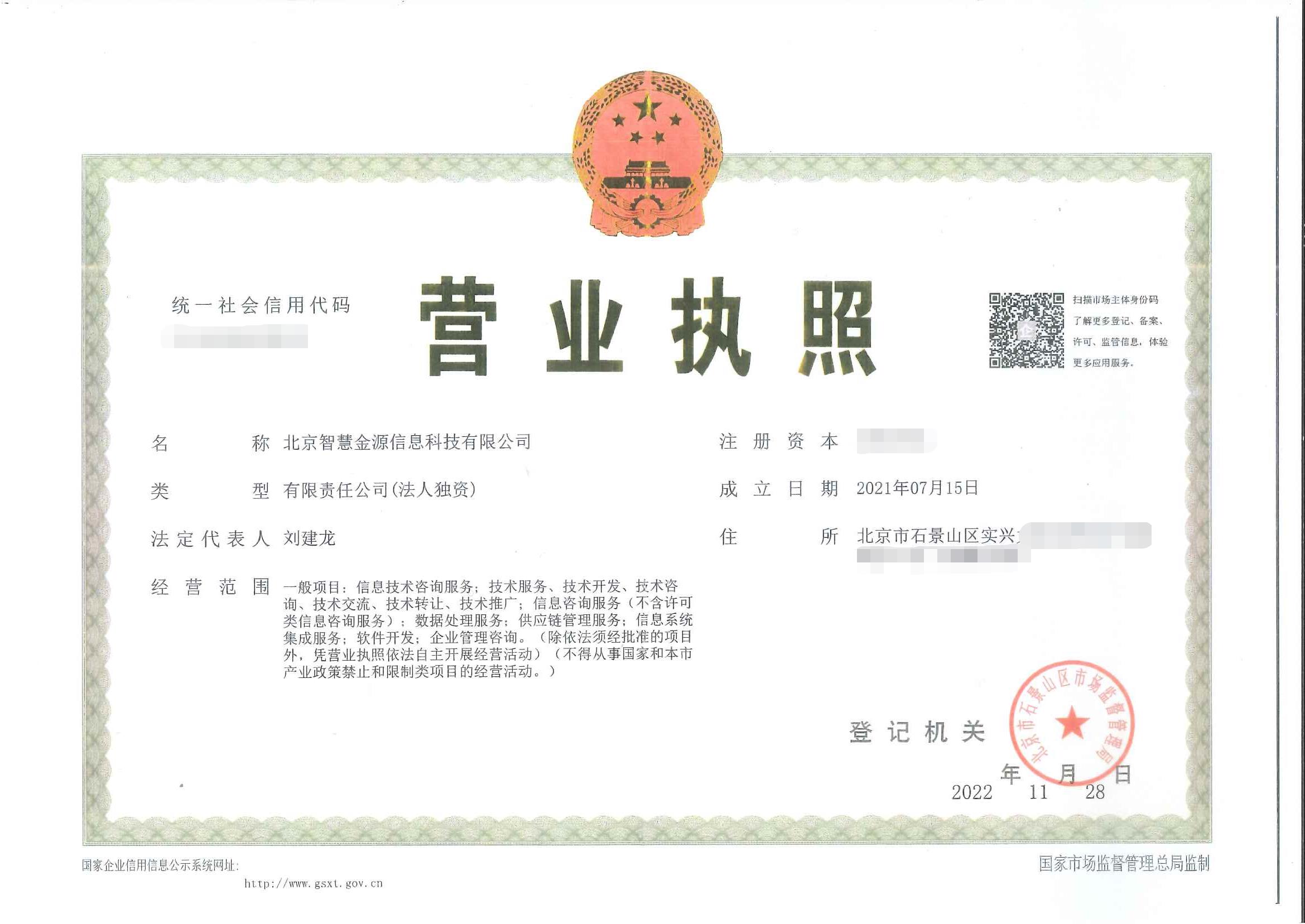 公司全资子公司“北京智慧金源供应链管理有限公司”注册成立,注册资本1000万元,注册地北京石景山区。