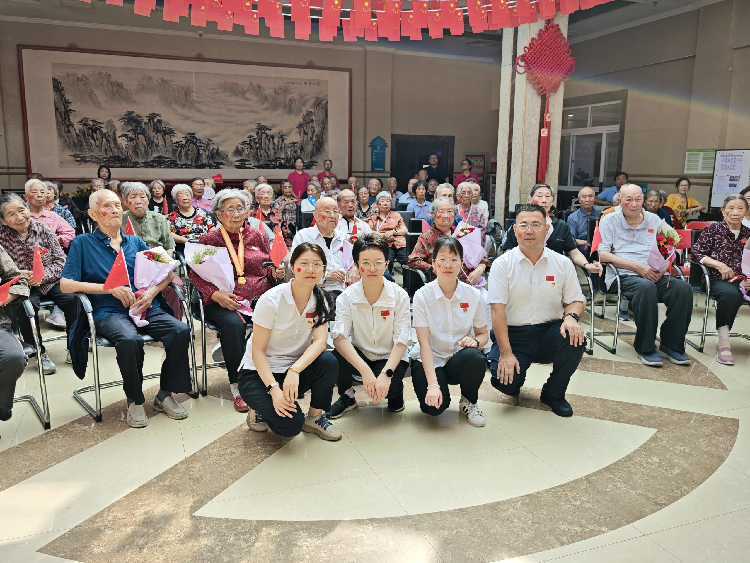 活动当天,党员志愿者推着轮椅送抗战老战士老同志来到现场,他们胸前的勋章在阳光下闪耀着光芒。入座后,党员志愿者将一束束鲜花献给老战士老同志们,花朵的鲜艳与他们的笑容交织在一起,构成了一幅温馨而感人的画面。