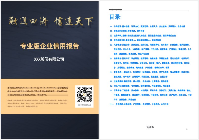三是企业信用报告按需生成。系统运用前沿的人工智能、大数据、云计算等技术,获取企业的资信和财务状况,通过企业的公司治理结构、主营业务开展情形、法务诉讼信息、投融资信息等,对其履约能力进行评判,随时按需生成各类企业的精准信用评估情况,合理防控业务风险。