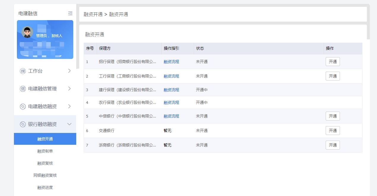 2019年12月21日,平台上线“银行通道”模块,积极拓展银行渠道,寻找银行低成本资金,以切实为平台中小微企业客户降低融资成本。目前平台已成功与部分大型银行建立了合作关系,其中包括中国农业银行、中国建设银行、中国工商银行、招商银行、中信银行、浦发银行、交通银行 等7家银行,目前已完成银行通道融资超百亿元。