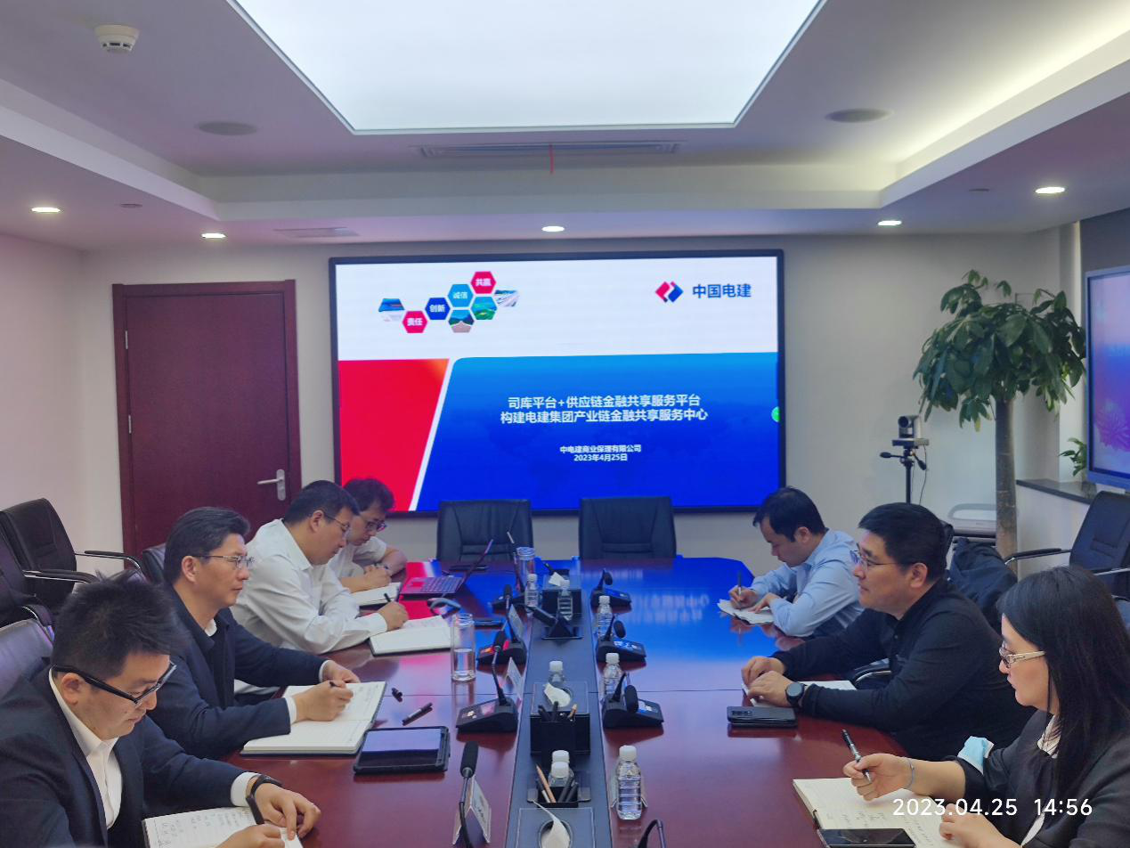4月25日,电建股份公司财金部副主任张海涛带队,到公司对集团司库系统“供应链金融池”搭建工作莅临指导。双方就集团全球司库“供应链金融池”搭建、集团金融资源有效管控等进行了交流会谈。公司党委书记、董事长、总经理席国超主持会议。