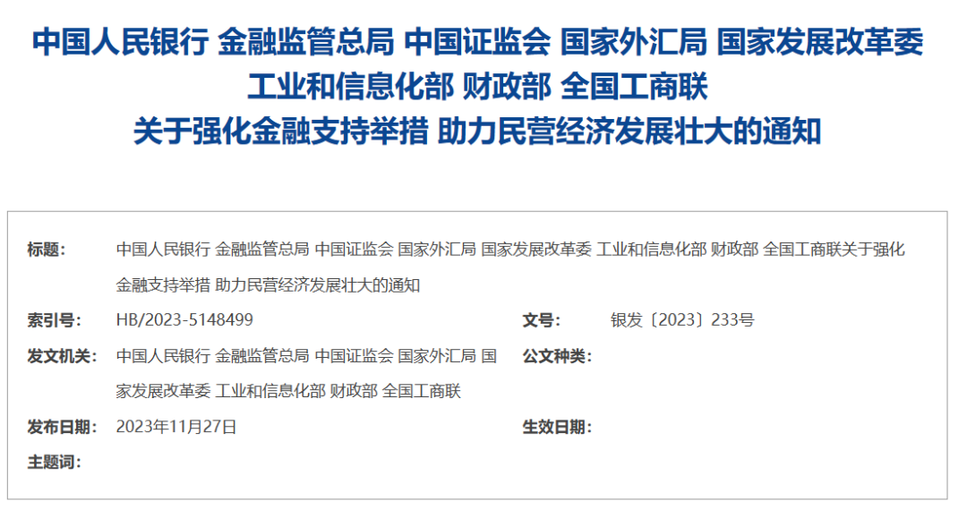 为深入贯彻党的二十大精神和中央金融工作会议要求,全面落实《中共中央国务院关于促进民营经济发展壮大的意见》,坚持“两个毫不动摇”,引导金融机构树立“一视同仁”理念,持续加强民营企业金融服务,11月27日,中国人民银行、金融监管总局、中国证监会等八部门印发《关于强化金融支持举措 助力民营经济发展壮大的通知》(下称《通知》),提出支持民营经济的25条具体举措。